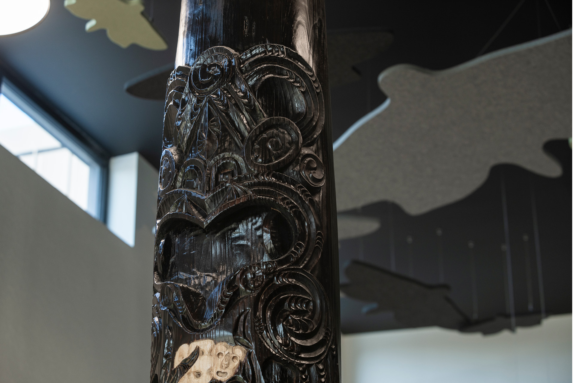 Custom designed whariki and tukutuku patters which are integrated into floor wall and ceiling designs