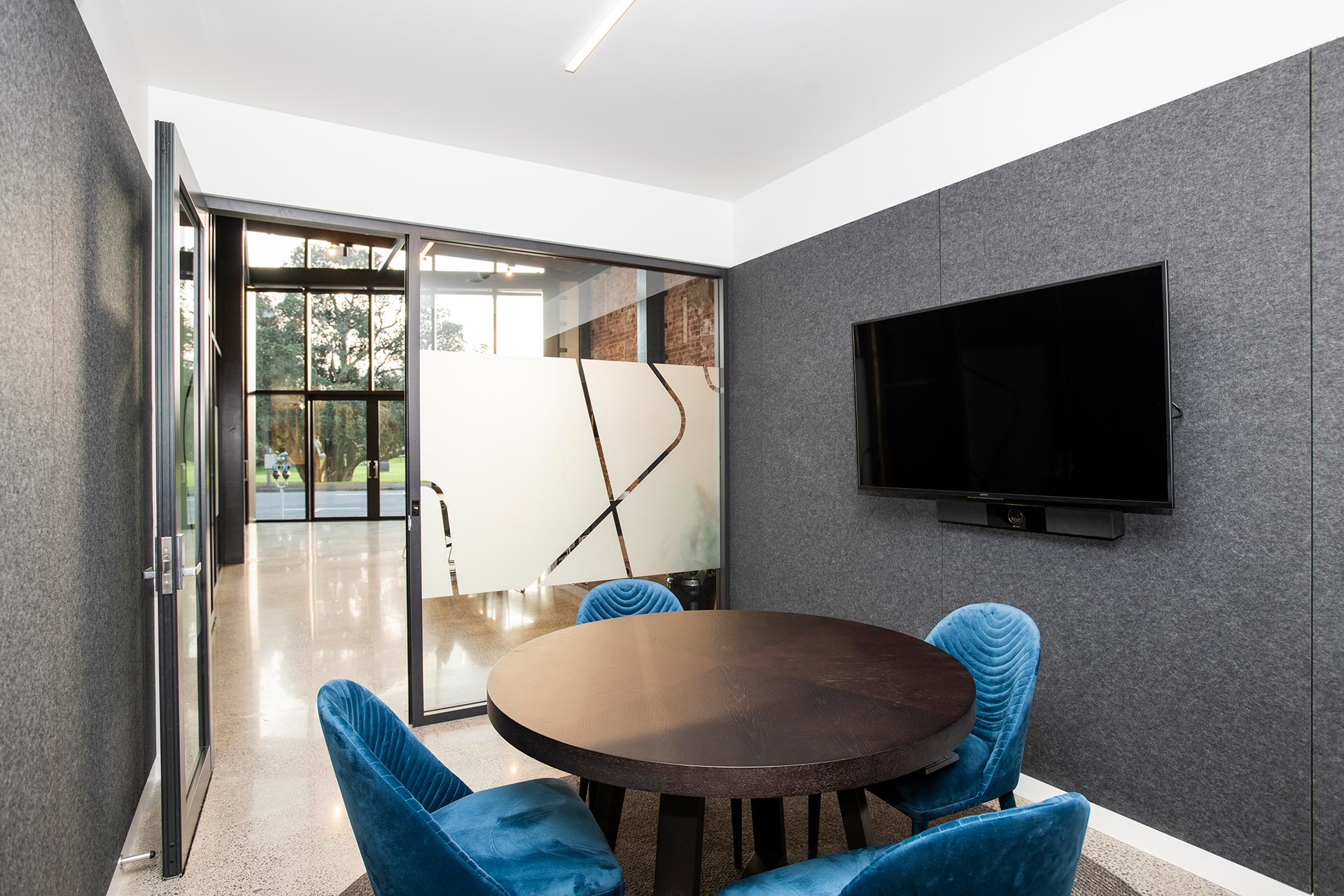 The front of the building features a welcoming reception, large open-plan sunlit auction and meeting room, and appealing public spaces. Deeper into the building is the open-plan work area, incorporating acoustic break out booths, flexible furniture and extensive acoustic treatment. Services are exposed and industrial in design. Interiors were created in conjunction with Pamela Hall of iD Workshop, and Graphic Design was by Rees Morley of Morley Design Group.