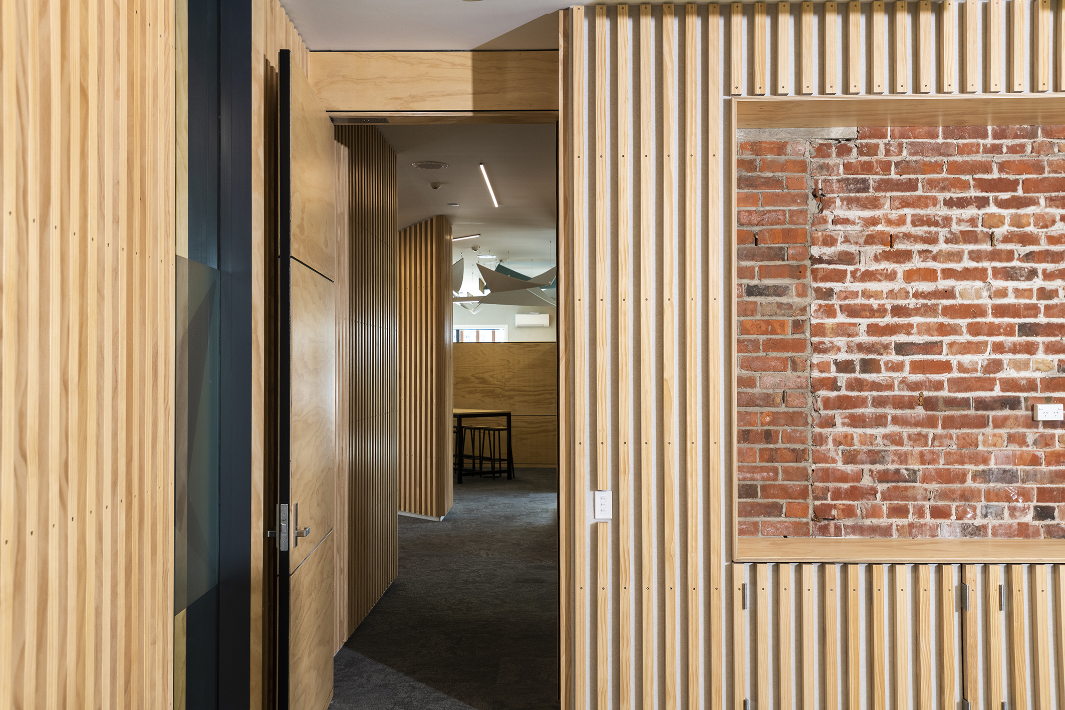 Careful planning and acoustic design created spaces that allow for collaboration between staff members from different parts of the business, in a welcoming and light-filled space, where natural and modern materials complement each other. Clever choice of materials complements the client’s business and ensure a comfortable, human feeling.