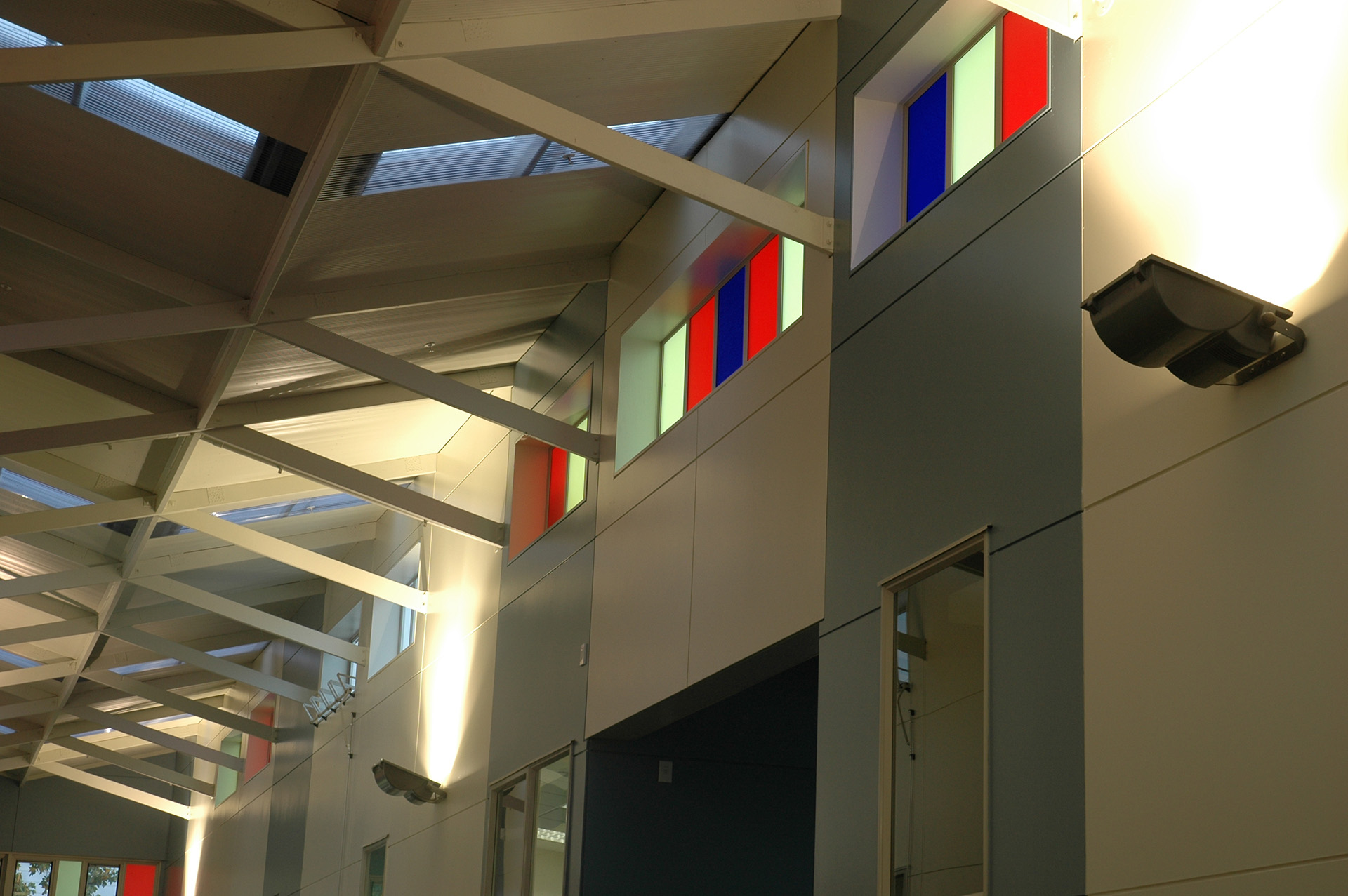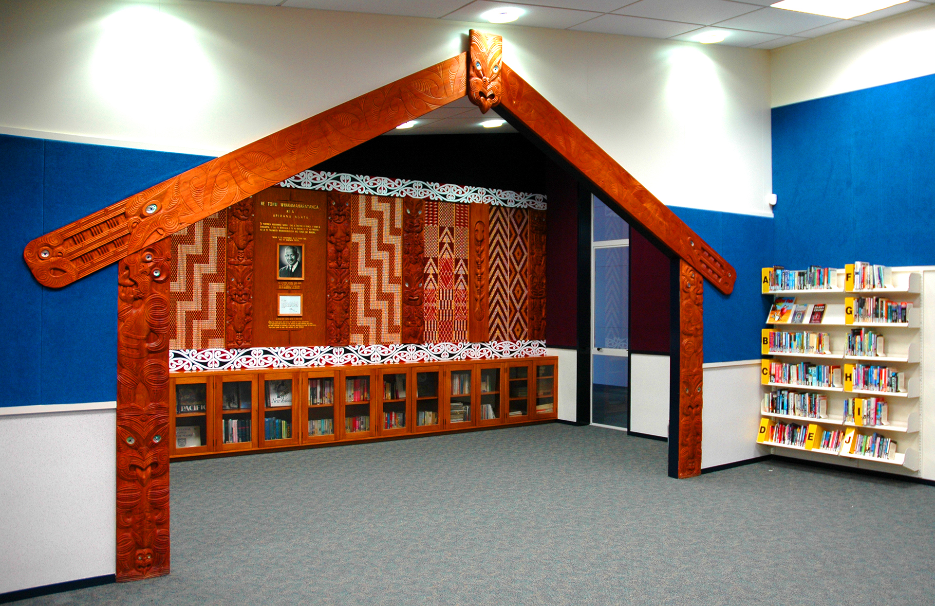 The building references the outline of Mt Hikurangi with the sloping ridges leading to the twin peaks. The central corridor reflects the language of the marae with a central tuhuhu (ridge beam), and was designed to evoke a waka, representing the learning journey that the students take during their time at the school. Exposed rafters and coloured clerestory glazing contribute to the generous sense of space. Flexible planning allows a variety of uses, creating a focal point for the community.